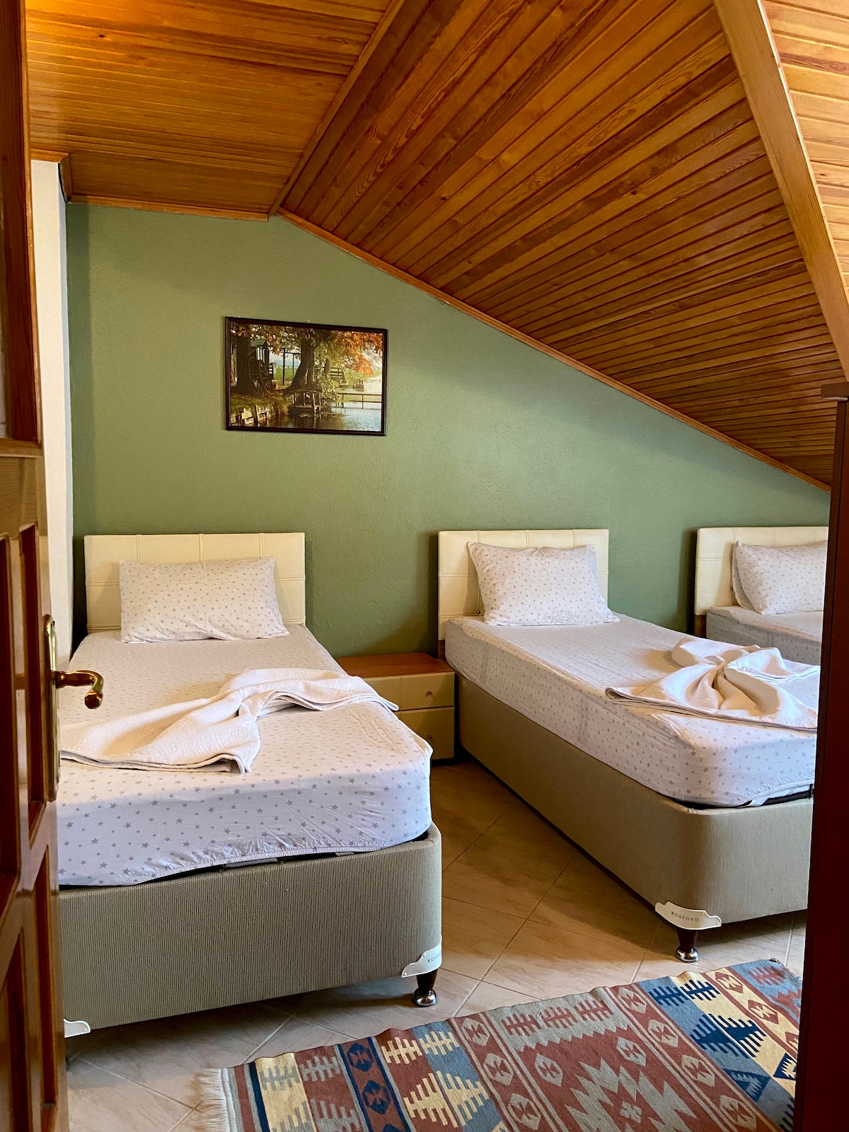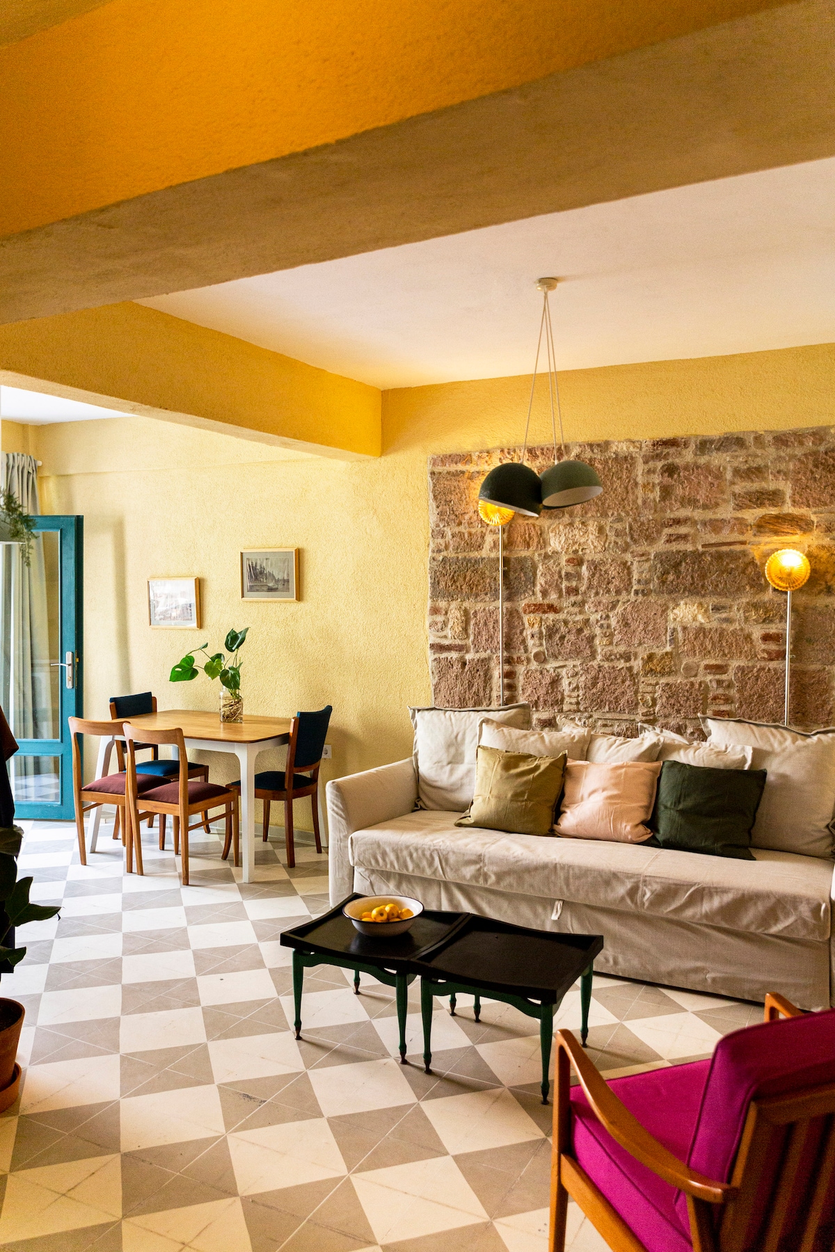 Portakal Ev'in giriş katında bulunan iki daireyi kiralayarak aileniz ve arkadaşlarınızla hem birlikte olabilir hem de özel alanlarınızda tatilin keyfini çıkarabilirsiniz. Ayvalık'ın merkezinde bulunan bu daireler Macaron'a bir, Ayvalık merkez sahilin eiki dakika yürüme mesafesindedir.