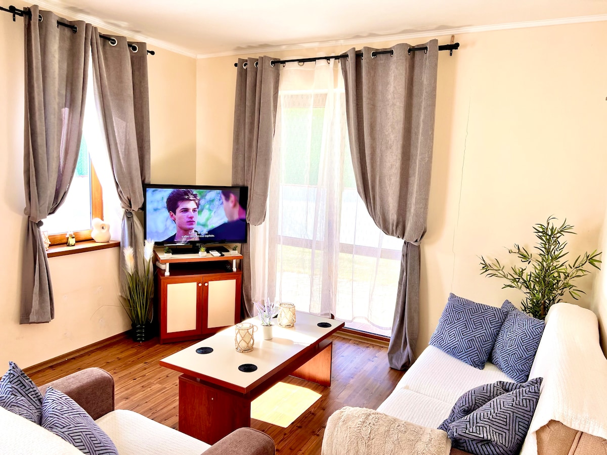 Enjoy a peaceful escape in our charming wooden house surrounded by forest in Balyovtsi, Bulgaria. The house comfortably hosts 4 guests and offers 2 bedrooms, a fully equipped kitchen, and a bright living area with large windows facing the garden. Just a short drive from Sofia, this house is perfect for couples, families, or anyone seeking relaxation in nature. We look forward to hosting you!