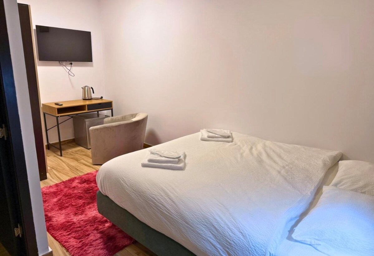 Cameră modernă și primitoare în inima Bucureștiului, perfectă pentru relaxare după o zi de explorat orașul. Pat queen confortabil, design fresh, Wi-Fi rapid, AC și baie privată. Aproape de transport, restaurante și viața vibrantă a capitalei. Alegerea ideală pentru o escapadă urbană fără griji!