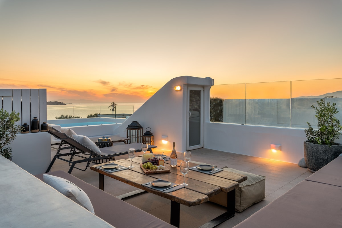 D’Angelo Sunset Penthouse by the windmills is a newly renovated private penthouse located in the heart of Mykonos. The Penthouse's breath-taking panoramic view of the Aegean Sea and Mykonos Town is only one of the reasons which make D’Angelo Sunset the perfect choice for your holidays. Both the interior and exterior areas will host unforgettable moments during your stay in Mykonos. A short walk (50 m) to the famous Windmills, Little Venice and the historical centre as well as the Fabrika square