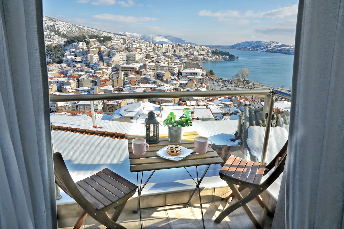 Ολοκαίνουργια, ζεστή και πανέμορφα διακοσμημένη γκαρσονιέρα, ιδανική για ζευγάρια και οικογένειες, με πανοραμική θέα της λίμνης της Καστοριάς που κόβει την ανάσα!! Υπάρχει κρεβατοκάμαρα με 2 μονά κρεβάτια (ή 1 διπλό) και μπαλκόνι όπου μπορείτε να απολαύσετε την μαγευτική θέα ενώ χαλαρώνετε. Η κουζίνα είναι πλήρως εξοπλισμένη με φούρνο, εστίες αφής, ψυγείο, βραστήρα κ.α. για την προετοιμασία σνακ και γευμάτων. Απέχει μόλις 150μ από το κέντρο της πόλης. Διατίθεται ελεύθερος χώρος parking.