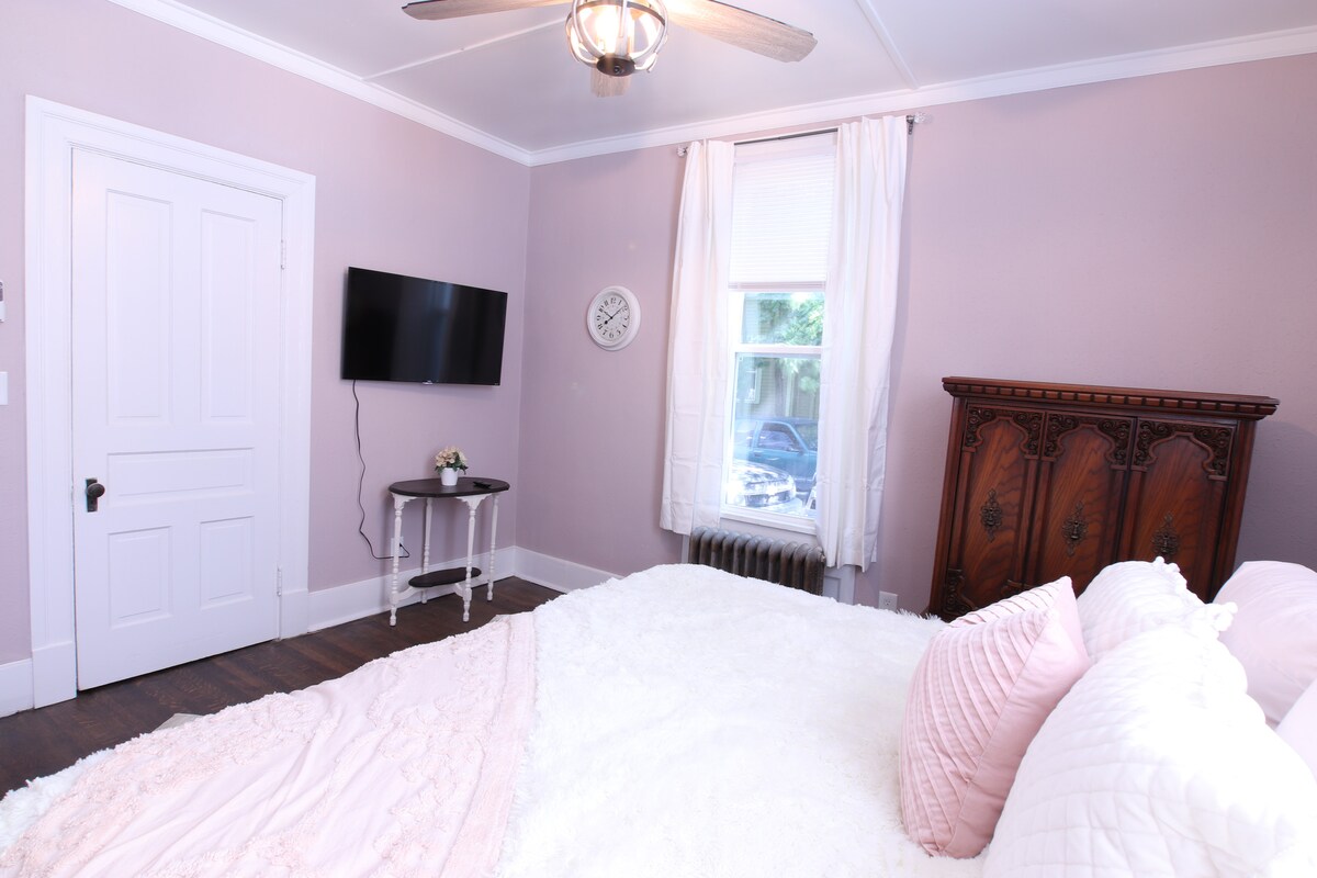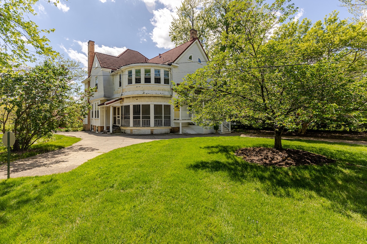 Peaceful, centrally-located historic 1892 Queen Anne Victorian home. The Eagle's Nest has private entrance, off street parking, 2 bedrooms, furnished suite on the 2nd floor overlooking White River. Walk 0.6 miles to downtown Muncie, less than 2 miles to Ball State Univ. and 2 blocks to the Bob Ross Experience (Minnetrista). Nearby eatery and brewery options. Just 29 steps to 62-mile Cardinal Greenway, longest trail in Indiana. Might see an eagle hunting along the river too. You will love it!