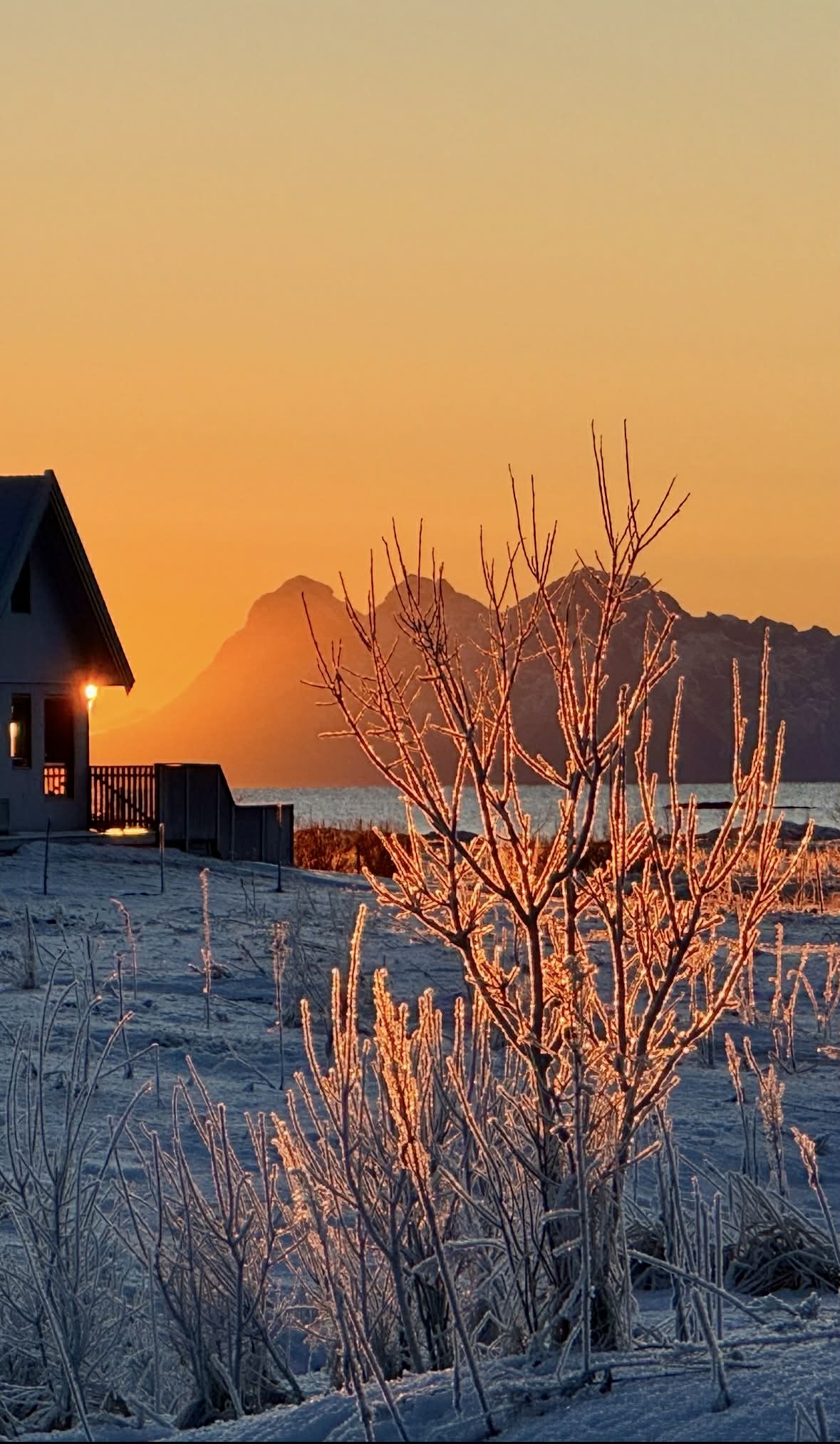Tjeldsund海边的小屋