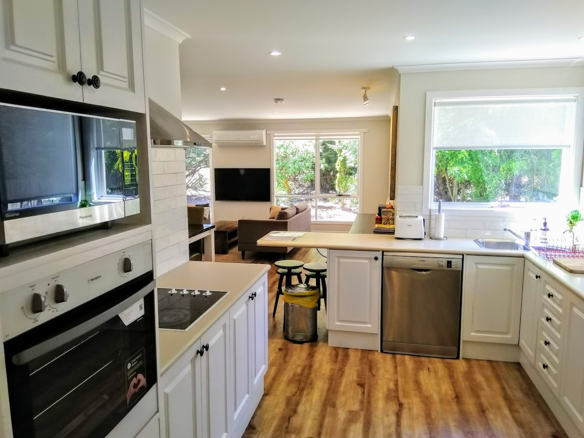 ‘Artisan’ cottage welcomes all visitors, local and international. Our historic cottage has period features cleverly integrated with modern facilities which include two luxurious queen size beds , two bathrooms, open plan lounge, dining and kitchen. We are unique to Ballarat offering the cosy comfort of a wood fire as extra heating for those cold country nights. The designer kitchen suits all cooking needs and modern laundry facilities are included for convenience. 'Artisan' Cottage Ballarat.