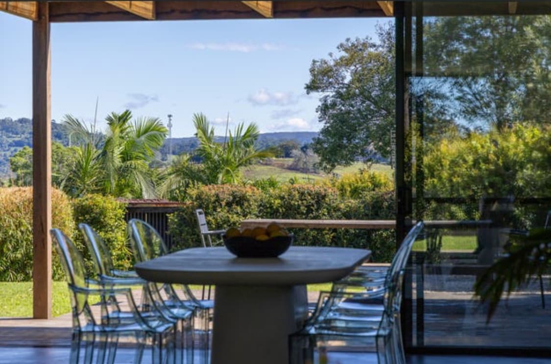 Enjoy the stillness as the sun moves from the ocean across the hills. You’ll hear birds, see changing light and feel the rhythm of the land. Set on the ridge in The Pocket, just 25 minutes north of Byron Bay, this home offers wide views and real quiet. Renovated by Australian artist Craig Ruddy as his personal sanctuary, it remains a place to slow down, reset and simply be. A space shaped by art, nature and intention.