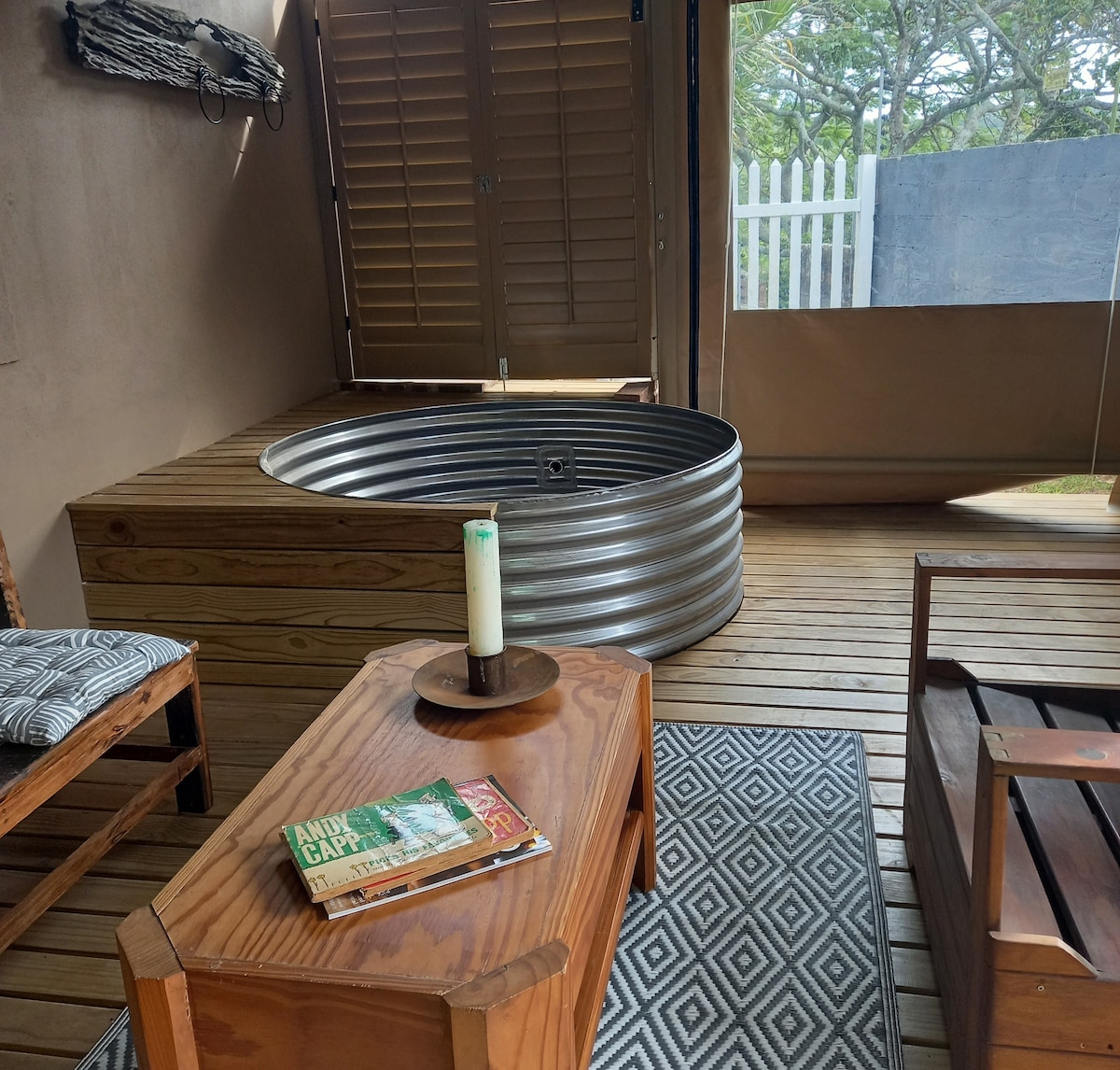 Driftwood Coastal Cottage offers comfortable self-catering accommodation in a lovely, contemporary setting in the small town of Salt Rock, Ballito. The spacious open plan layout accommodates 2 guests. It has a king size bed, ample cupboard space and a full en-suite bathroom with a bath and shower. The living area opens onto a private patio with braai facilities. The kitchen is fully equipped and the unit is serviced every week day (public holidays not included) Full DStv and secure parking.