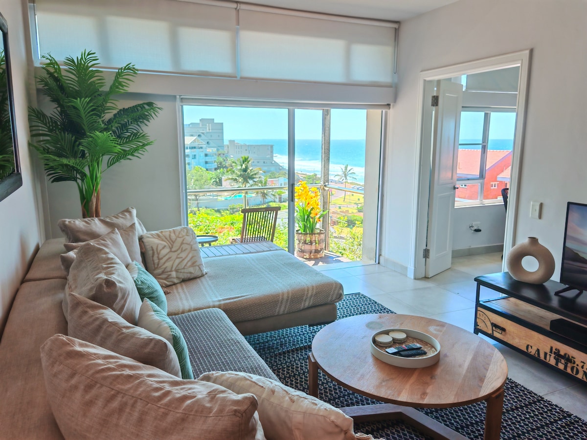 This modern contemporary styled studio is sea facing with 180 degree seaviews. With all amenities within walking distance its the perfect destination for the "complete break" No driving needed.. Simply get a shuttle from the airport which is 8mins away. Restaurants, convenience shops, doctor, pharmacy, laundry, bottle store,butchery and plenty more located directly under the apartment block. More within walking distance. Just a few mins heading South to Umhlanga and Durban or North to Ballito.