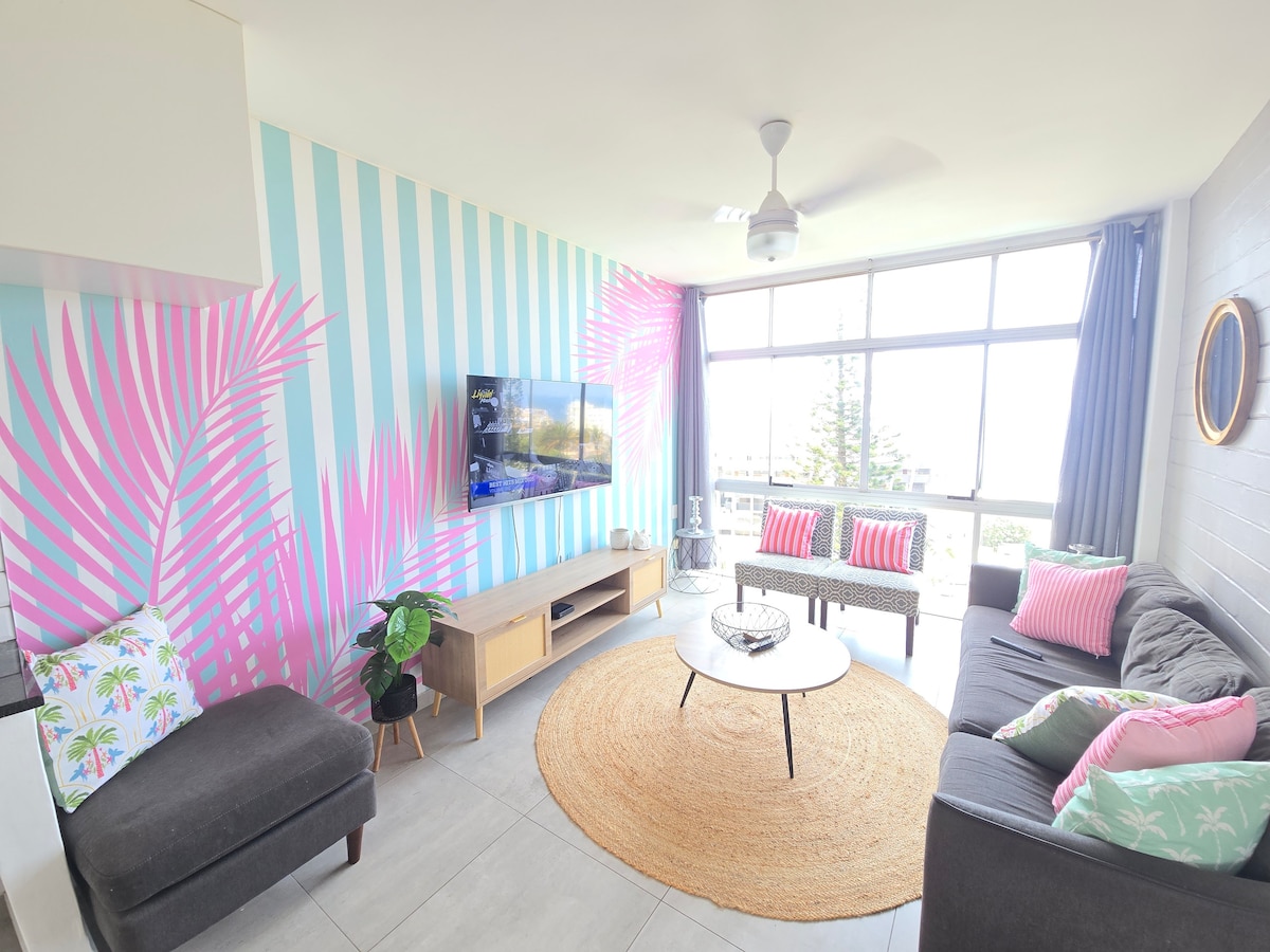 This stylish unit is OPPOSITE the popular UMDLOTI BEACH! Inverter for power cuts available. Wake up to the sunrise & dolphins frolicking in the ocean. The apartment is a 5 min walk from a stretch of restaurants & has a communal pool. It has a King size bed & 1 sofa couch (for a child) The views are to die for. Fall asleep to the therapeutic sounds of the ocean. 10 mins from the airport,umhlanga or ballito. No parties allowed. Please note there are a few flights of stairs to the unit.
