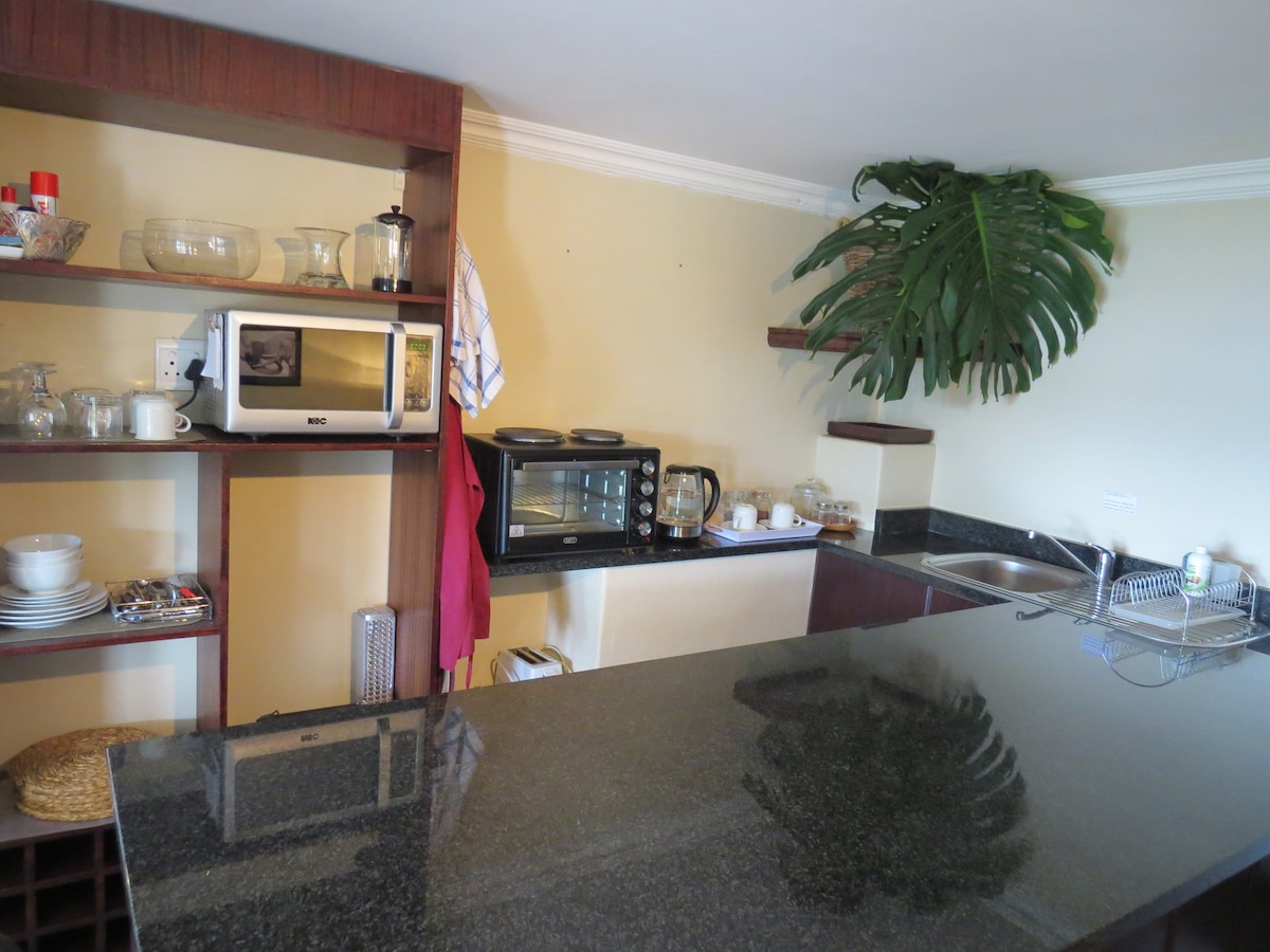 Our Beautiful Self Catering studio is situated on our property and is very private, comfortable with amazing views. It has full DSTV, Wifi, Aircon, Secure Undercover parking, Pool, and a Private entrance. Close to Shopping Malls, Restaurants, Beaches and is 15 minutes drive from King Shaka International Airport. We provide tea,coffee,milk, yogurt and muesli. The kitchen has, a mini oven, microwave, kettle,fridge, toaster. We can accommodate a YOUNG CHILD Only, NOT 3rd ADULT on a small bed!