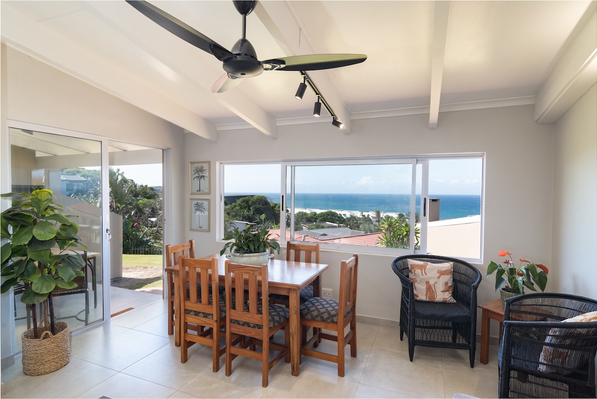 Quaint, comfortable, well equipped front row garden unit. Uncapped fibre wifi and 1KVA UPS. Sea views from all rooms. Direct easy beach access down a locked gated pathway. Lovely swimming pool. 20 minutes from Ushaka airport. Close to shopping centres, restaurants, animal farm and golf courses. The perfect spot to relax and unwind. You will feel miles away from everything but convenient to many shops, amenities and activities. Ideal for young families or a couples retreat.