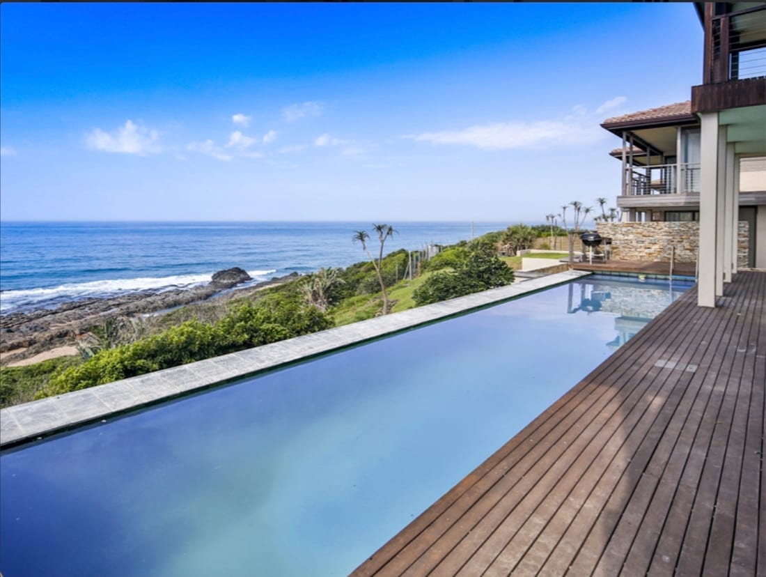 Escape to this superb home with Majestic 180 degree ocean views, spacious with a fantastic wooden deck and all bedrooms have sea views and open onto the top and bottom decks with gorgeous pool No load shedding as house has an inverter. Serviced on request. So kick back and relax in this calm, stylish space. Fabulous pool with a sea view and in a quiet cul-de-sac withing walking distance to beach, and restaurants. Pets welcome on request.
