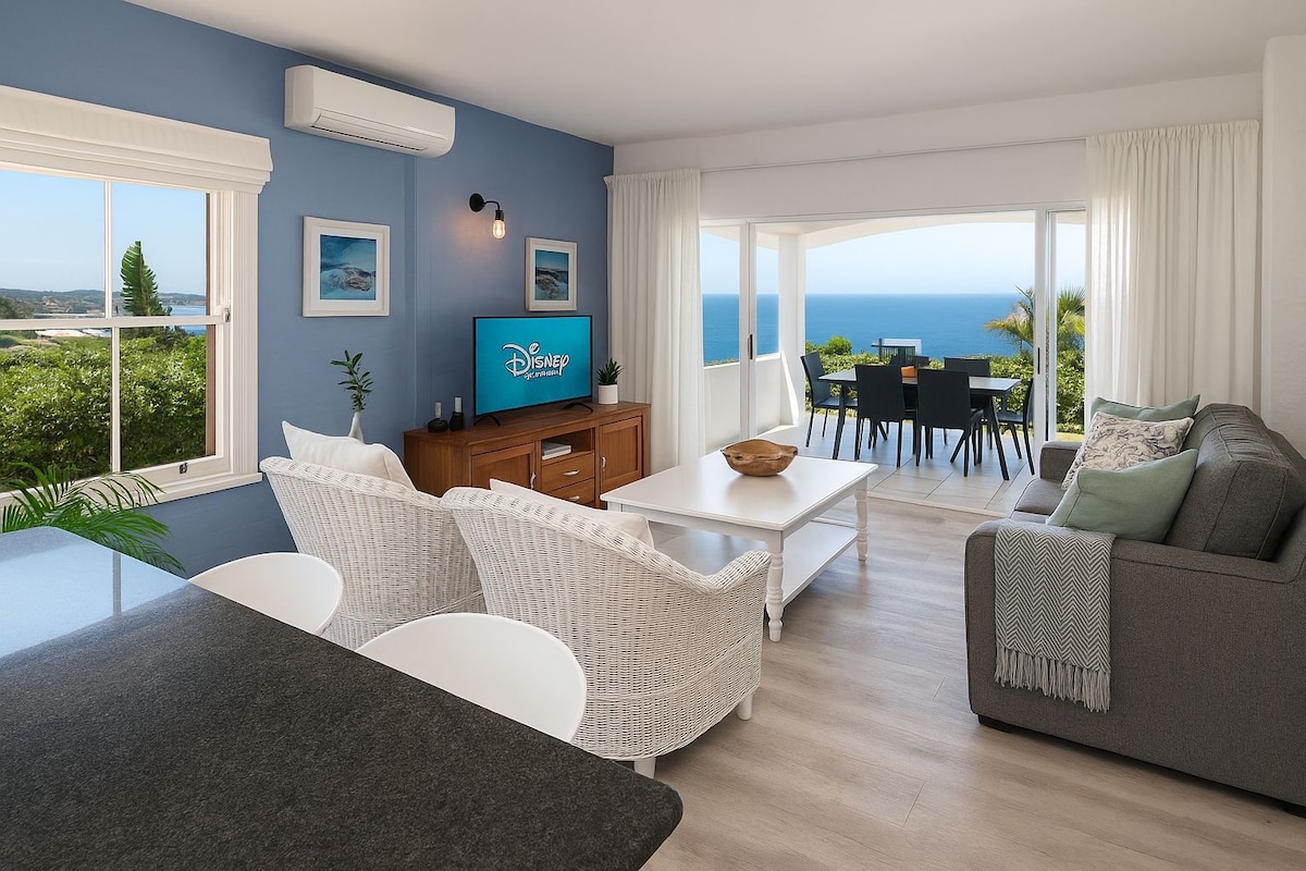 Wake up to uninterrupted ocean views in this luxurious beachfront apartment, perched above Thompson’s Bay tidal pool in the iconic Santorini Estate. 🏖️ Enjoy direct, private access to two beaches – Thompson’s Bay and the semi-private Perissa Beach. This stylish space offers everything you need for a relaxing coastal getaway: ✅ 24-hour security & CCTV ⚡ Back-up power ❄️Air-conditioning throughout 🧼 Daily Cleaning Included ☕ Nespresso machine 🏊 6 sparkling pools 🛝 Kiddies playground