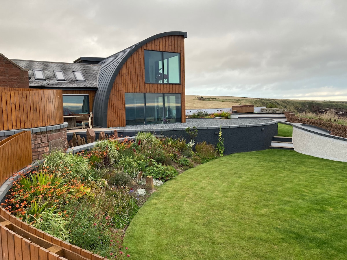 The Edge provides panoramic views of the North Sea hidden away in the village of Auchmithie, a true Scottish Gem. This stunning location is the perfect back drop to explore Angus, Aberdeenshire, Dundee, Perth and Tayside, whether its golfing in Carnoustie or St Andrews, Hiking in the Glens or visiting the new V&A museum, we are the ideal base to adventure or just kick back in the hot tub and relax listening to the sea. Be sure to book into the But 'n' Ben, Auchmithie's five star restaurant.