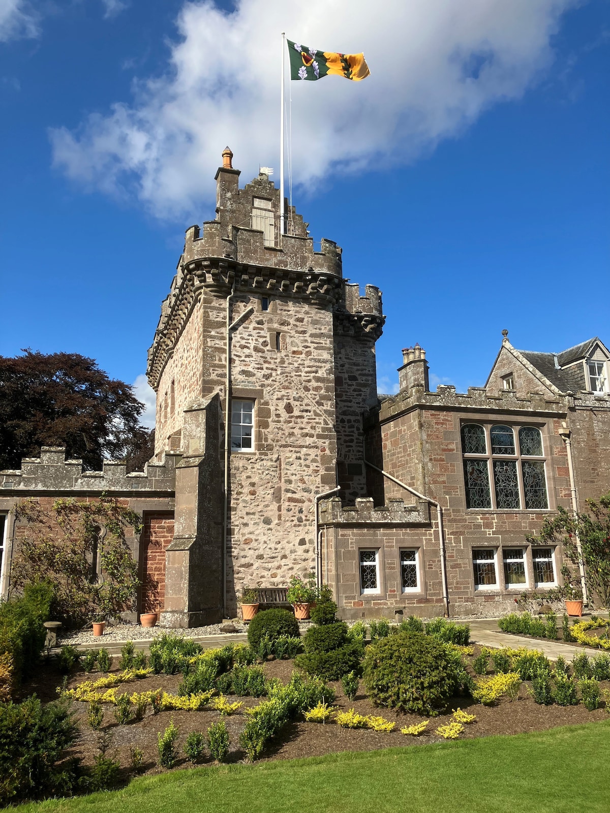 Traditional & relaxed accommodation in the 16th century Scottish tower of our family home. Accessed by a spiral staircase your space comprises 2 bedrooms for 4 people over two floors in a private wing of the castle with bathroom and small sitting room. Full breakfast included. Set in the foothills of the Cairngorm National Park, this is an ideal stop off between Inverness and Edinburgh. Balmoral Castle, Dunnottar Castle, Glamis Castle and St Andrews are nearby. Tennis court available.