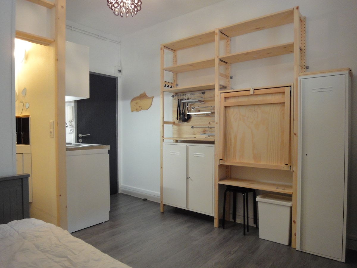 C'est un studio de 11m2, c'est petit, mais il y a tout, et nous avons optimisé au maximum pour ne pas se sentir oppressé dans ce petit studio. Il vient d'être refait à neuf.