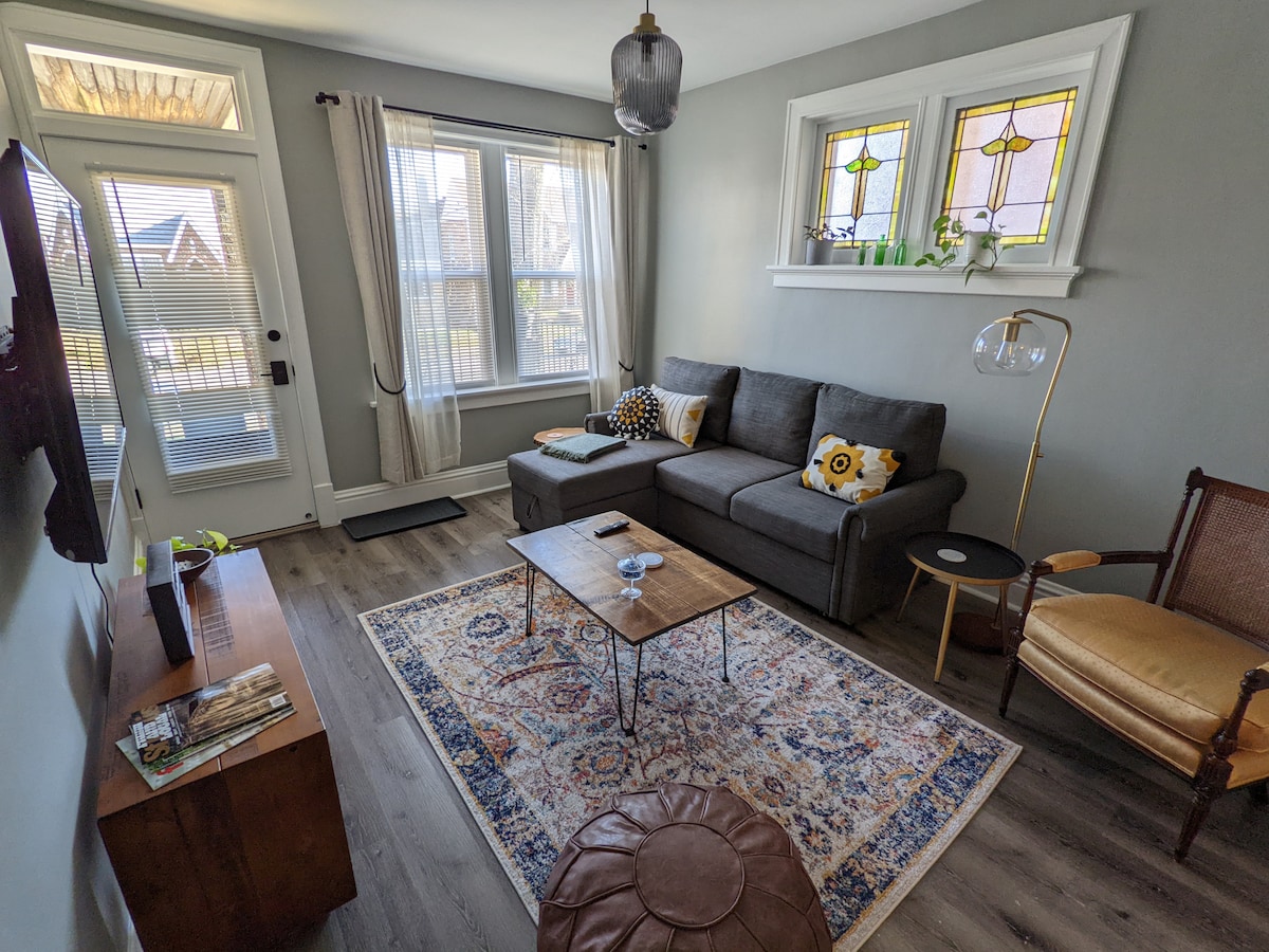 Newly-rehabbed & cozy guest house. Everything you need is located here in the historic Bevo Mill neighborhood. In the heart of south St. Louis city, you’re steps away from local businesses, including the picturesque, historical Das Bevo. Step into a vintage-styled oasis, featuring large windows with plenty of natural light, tall vaulted ceilings, comfy queen bed, unique fridge, breakfast bar, sizable bathroom with a large walk-in shower. Hang outside at the picnic table under cute string lights.