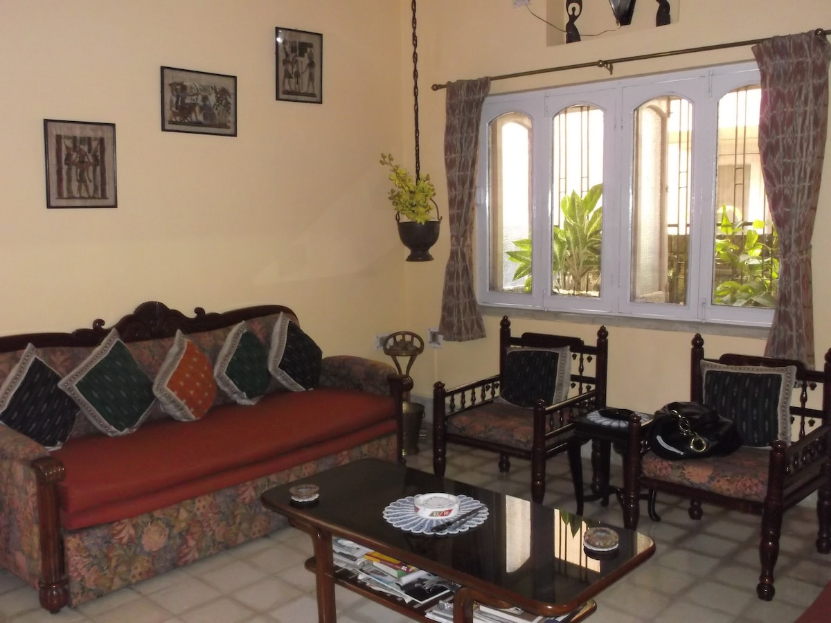 Welcome to our quiet, spacious and elegant home built in 1965. Located in an upscale neighbourhood with all the amenities that you need in a home away from home. This centrally located 1BHK home is airy, brightly lit and situated on the ground floor with an open balcony sit-out to take in the Kolkata vibe. The home has a living space decorated with vintage artifacts and furniture, an entertainment system, a cozy bedroom with a work space, a well equipped kitchen and 4-seater dining area.