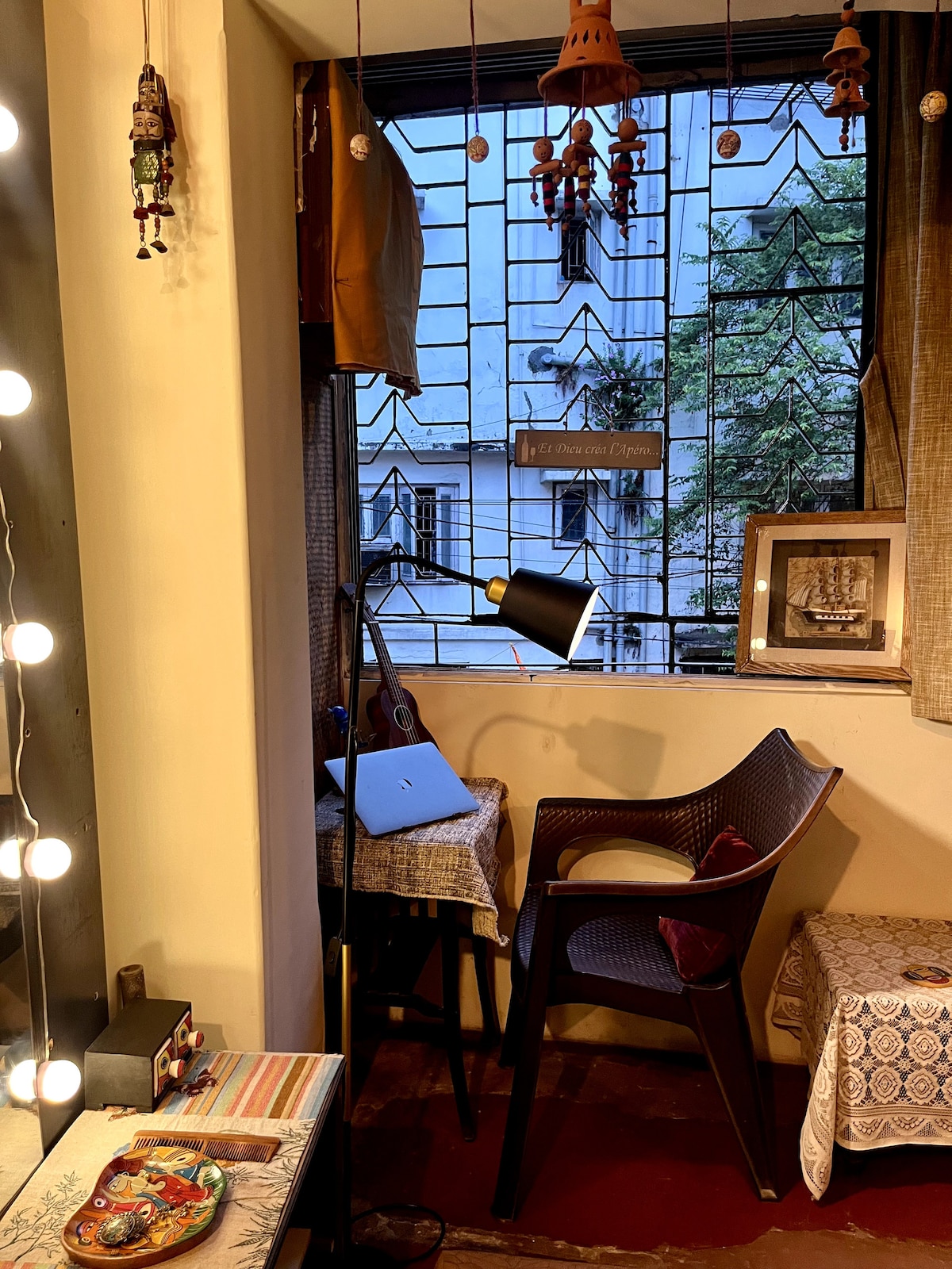 Experience a unique stay in a charming apartment on the top (4th) floor of The Red Bari cowork and coffee shop. Live in a restored and repurposed, heritage building with authentic Calcutta feels and all the comforts of modern amenities. Airy, with plenty of natural light from windows and access to terrace. 2 min walk from the Metro, very centrally located in the heart of the city. Elevator access available upto 3rd floor. Access to dedicated work space, and other common areas.