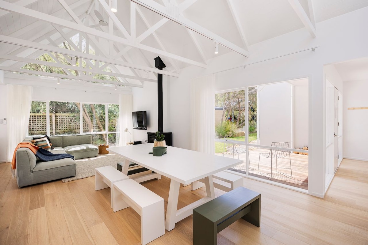 Poet’s Corner House on Phillip Island is a peaceful retreat that blends modern comfort with relaxed coastal charm. With two queen bedrooms, a sunlit loft lounge, and a cozy fireplace, it’s ideal for couples, families, or friends. Prepare meals in the gourmet kitchen or outdoors on the BBQ and pizza oven, then unwind in the garden hammock under the stars. Minutes from Surf Beach, local dining, and the Penguin Parade, it’s a welcoming base to slow down, recharge, and enjoy “Island Time.”