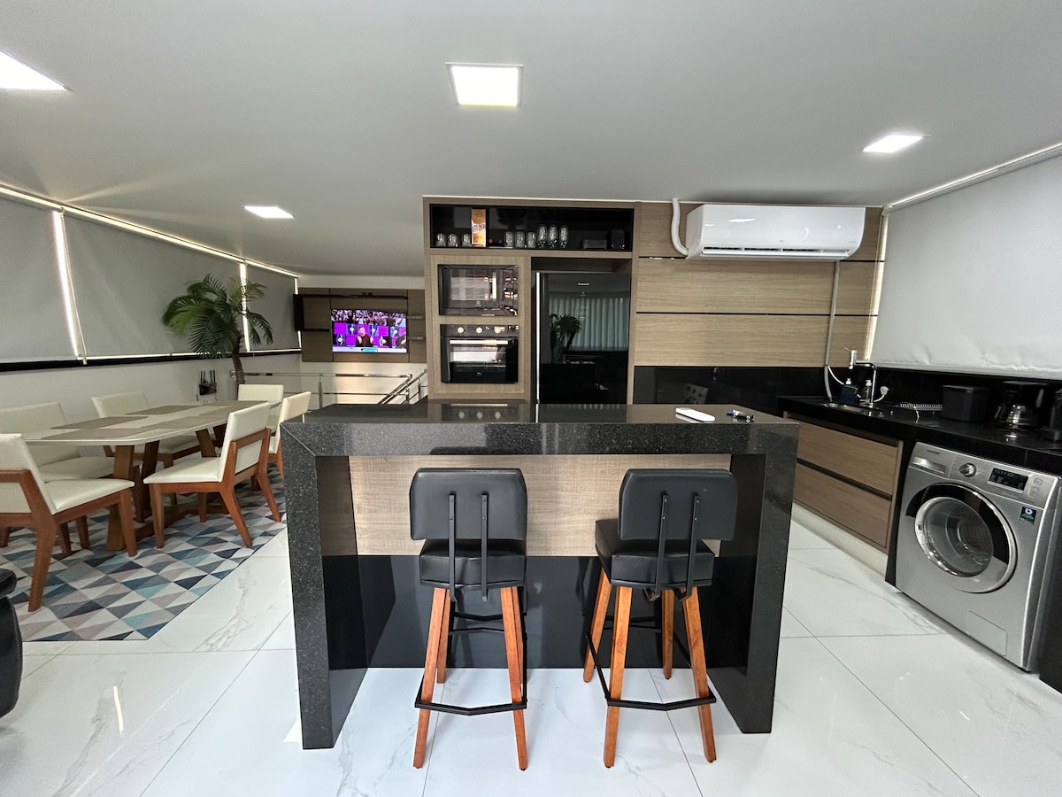 Este lugar único tem um estilo próprio. Foi todo elaborado com projeto arquitetônico e luminotécnico nos mínimos detalhes, cuidadosamente pensado no conforto e bem estar dos hóspedes. Desde da localização do imóvel ao estilo moderno, aconchegante e prático. Criamos um espaço pensando em proporcionar aos hóspedes a sensação de estar no conforto de sua casa com toda a praticidade para aproveitar seus dias de descanso, férias ou mesmo a trabalho de uma forma que seja uma experiência singular.