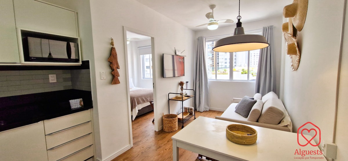 Um lugar bem localizado, com preço justo e super aconchegante. Fica apenas 100m da Praia Central, no centro de Balneário Camboriú, com fácil acesso a todos os lugares. Tudo aqui é pensado pra facilitar sua estadia, tendo o que você precisa pra descansar, fazer refeições, tomar um banho tranquilo e dormir bem após curtir a cidade. Roupa de cama e banho inclusas. Não possui garagem. Há estacionamentos pagos próximos.