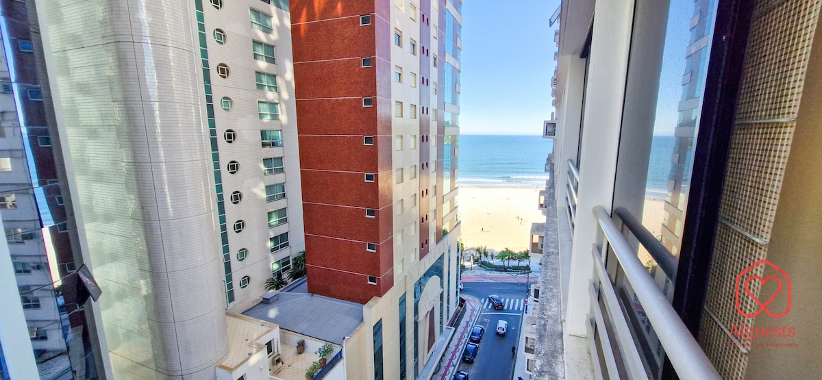 Lindo Apartamento a 30 metros da Praia, com Vista para o Mar e Cidade, amplo, ventilado, climatizado, equipado, REDE DE PROTEÇÃO nas janelas e na sacada.Sala de estar com Tv, Sala de Jantar com churrasqueira, Cozinha com espaço para refeição, espaços amplos e integrados permitindo interação entre os hóspedes. A Sacada tem vista para o Mar e cidade, com mesa e cadeiras, oferecendo momentos incríveis: tomar café, happy hour, trabalho. Ar condicionado nos quartos. 2 GARAGENS INDIVIDUAIS