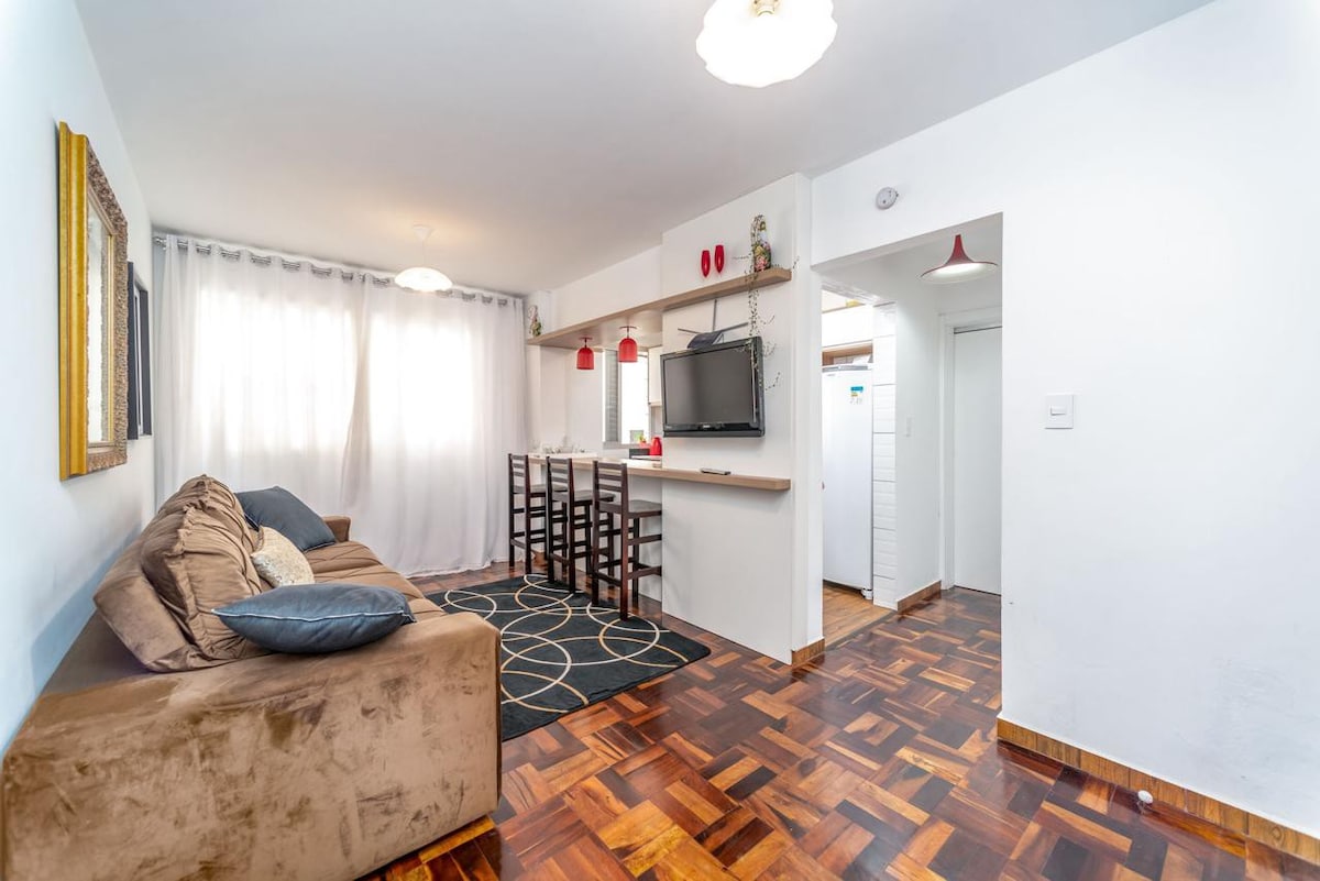 O apto tem um quarto Tipo Estúdio, com Cama Quem, na sala um sofá cama e deixo um colchão avulso, Ele é ideal para Casal com filhos, Cozinha com fogão de indução c 2 bocas, equipado com todos os utensílios Ar condicionado quente e frio no quarto, mas ele aquece ou refrigera o apto tdo, Forneço roupa de cama e Banho, cobertores, O PRÉDIO TEM UMA BOA VAGA DE GARAGEM INCLUSA DENTRO DO PRÉDIO A voltagem da energia em SC é 220vtS