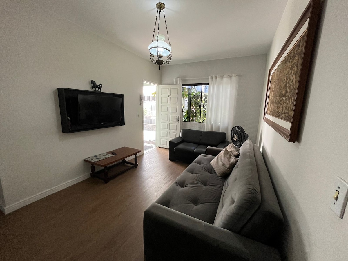 LEIA A DESCRIÇÃO COMPLETA Apenas 300 m do mar e 10 minutos do centro de Balneário Camboriú e Itapema, próximo ao Multiparque. • Ar-condicionados SPLIT • 2 quartos (2 camas de casal + colchão de casal extra) c roupas de cama. • Cozinha completa incluindo air fryer • Sala arejada com sofá, ventilador potente, televisão com canais, filmes e séries. • Churrasqueira. • Wifi potente por toda a casa. • Fica em um terreno com mais casas porém tem entrada privativa e nenhum contato com outros moradores.