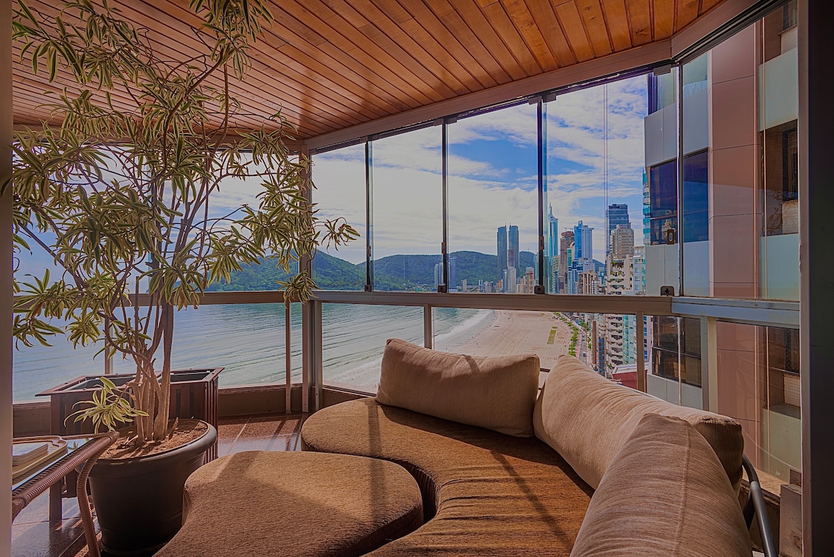 NOVO- RECÉM REFORMADO. Muito conforto, último andar, uma cobertura de revista com uma vista deslumbrante. Decorada com muito requinte e sofisticação. Totalmente equipado, 2 vagas na garagem, 2 piscinas (abertas no verão), 180m2 privativos no 28° andar com a melhor vista de Balneário Camboriú! Telas nas janelas dos quartos, berço e banheira para bebês! Na melhor localização da beira mar, em frente à Ilha, perto dos principais restaurantes da orla. Mercados, padarias e farmácias próximos.