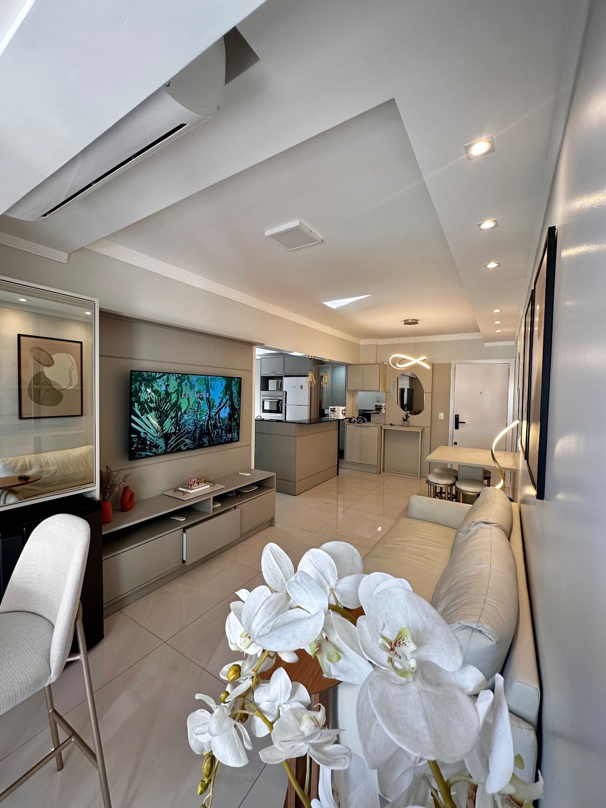 Lindo Apartamento a 30 metros da Praia, com Vista para o Mar e Cidade, amplo, ventilado, climatizado, equipado, REDE DE PROTEÇÃO nas janelas e na sacada.Sala de estar com Tv, Sala de Jantar com churrasqueira, Cozinha com espaço para refeição, espaços amplos e integrados permitindo interação entre os hóspedes. A Sacada tem vista para o Mar e cidade, com mesa e cadeiras, oferecendo momentos incríveis: tomar café, happy hour, trabalho. Ar condicionado nos quartos. 2 GARAGENS INDIVIDUAIS