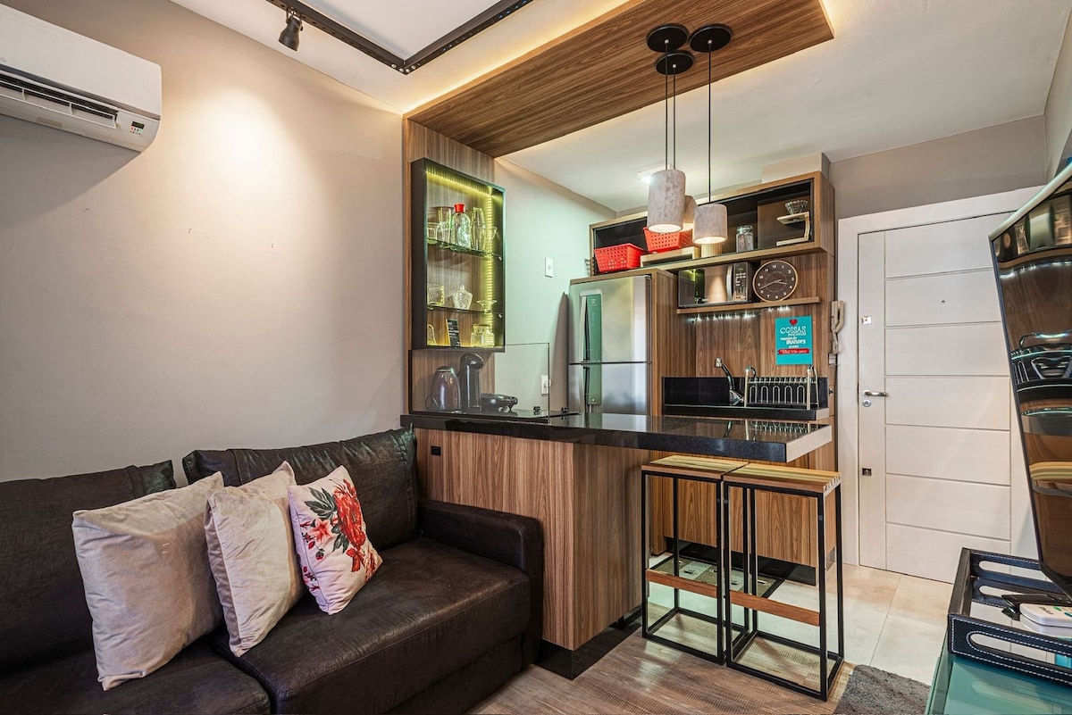 Conheça o Studio Brasilidades: Nosso pequeno notável, inspirado na rica Cultura Brasileira com decoração charmosa e aconchegante. Condomínio com piscina, churrasqueiras, academia e restaurante com vista para o mar e Roda Gigante. Obs.Caso não tenha disponibilidade na data desejada, verifique os outros Studios da Official Moradas neste mesmo prédio. Mande uma mensagem para o anfitrião que enviaremos as informações.