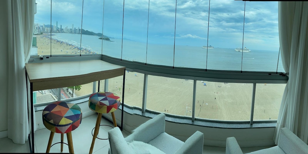 Relaxe nesta aconchegante acomodação com vista maravilhosa da praia em um dos lugares mais disputado de BC, na Av Atlântica, na Barra Norte, perto da Roda gigante e com várias quadras de beach tênis. Basta atravessar a rua e está na praia, além de comércio e restaurantes ao redor...tudo pode ser feito a pé. Apto todo climatizado e bem arejado com Wi-fi e ambiente para home office, todo equipado, incluindo cadeiras de praia, roupa de cama, mesa e banho. Seu Pet é muito bem vindo!.