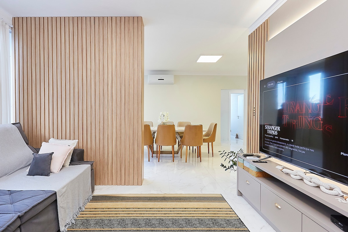 3 quartos, sendo uma suíte. Todos com cama box casal e ar condicionado! Ampla sala de estar e sala de jantar, também com ar condicionado, em um ambiente integrado com cozinha e churrasqueira. Banheiro social e lavabo. Próximo de supermercados, padarias, farmácias e restaurantes!