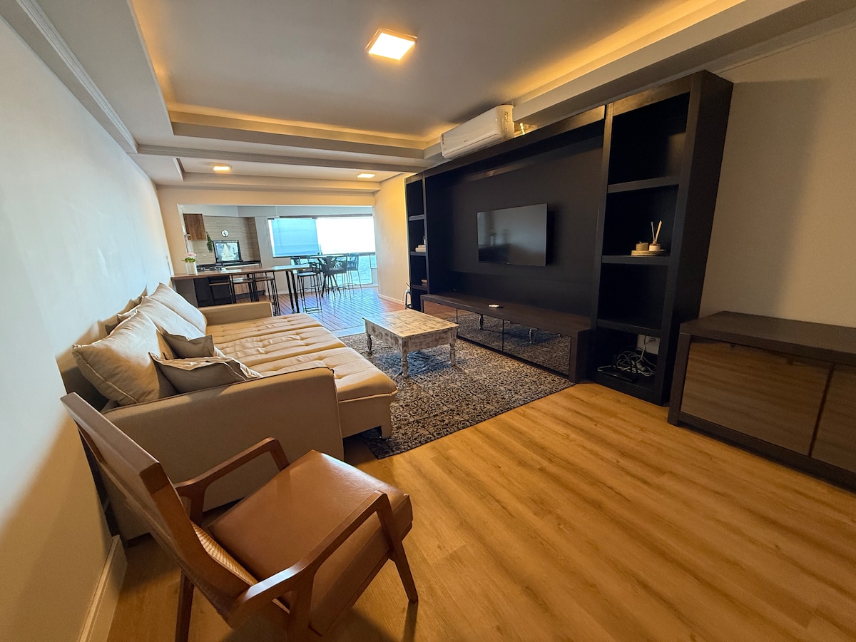 Ar Split nas três Suítes e na cozinha, sacada com churrasqueira e vidros Reike, Suíte principal hidro, persiana elétrica em todas as Suítes. Cozinha completa inclusive com lava-louças. Finamente mobiliado e decorado. Região Central da Cidade, próximo a tudo, não precisa de carro para nada. Está a 700m da praia. Edifício Embraed com portaria 24hs. 2 vagas de garagem. Capacidade para 6 pessoas. Não se permitem animais de estimação é proibido fumar no do imóvel.