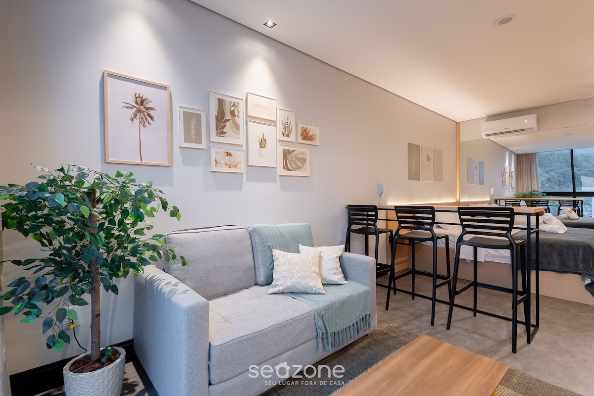 Design and comfort in the most vibrant coastline! Modern studio 300m from the beach, with a queen bed, sofa bed, air conditioning, Smart TV, and Wi-Fi. Equipped kitchen and dining space complete the experience. The sustainable building offers facial recognition access, voice automation, and clean energy. An environment designed for those who value comfort, mobility, and style. Prime location, close to shops and restaurants. Live Balneário with style. Book your exclusive experience now!