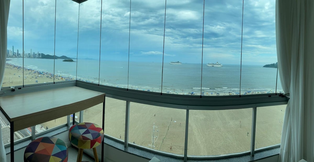 Relaxe nesta aconchegante acomodação com vista maravilhosa da praia em um dos lugares mais disputado de BC, na Av Atlântica, na Barra Norte, perto da Roda gigante e com várias quadras de beach tênis. Basta atravessar a rua e está na praia, além de comércio e restaurantes ao redor...tudo pode ser feito a pé. Apto todo climatizado e bem arejado com Wi-fi e ambiente para home office, todo equipado, incluindo cadeiras de praia, roupa de cama, mesa e banho. Seu Pet é muito bem vindo!.