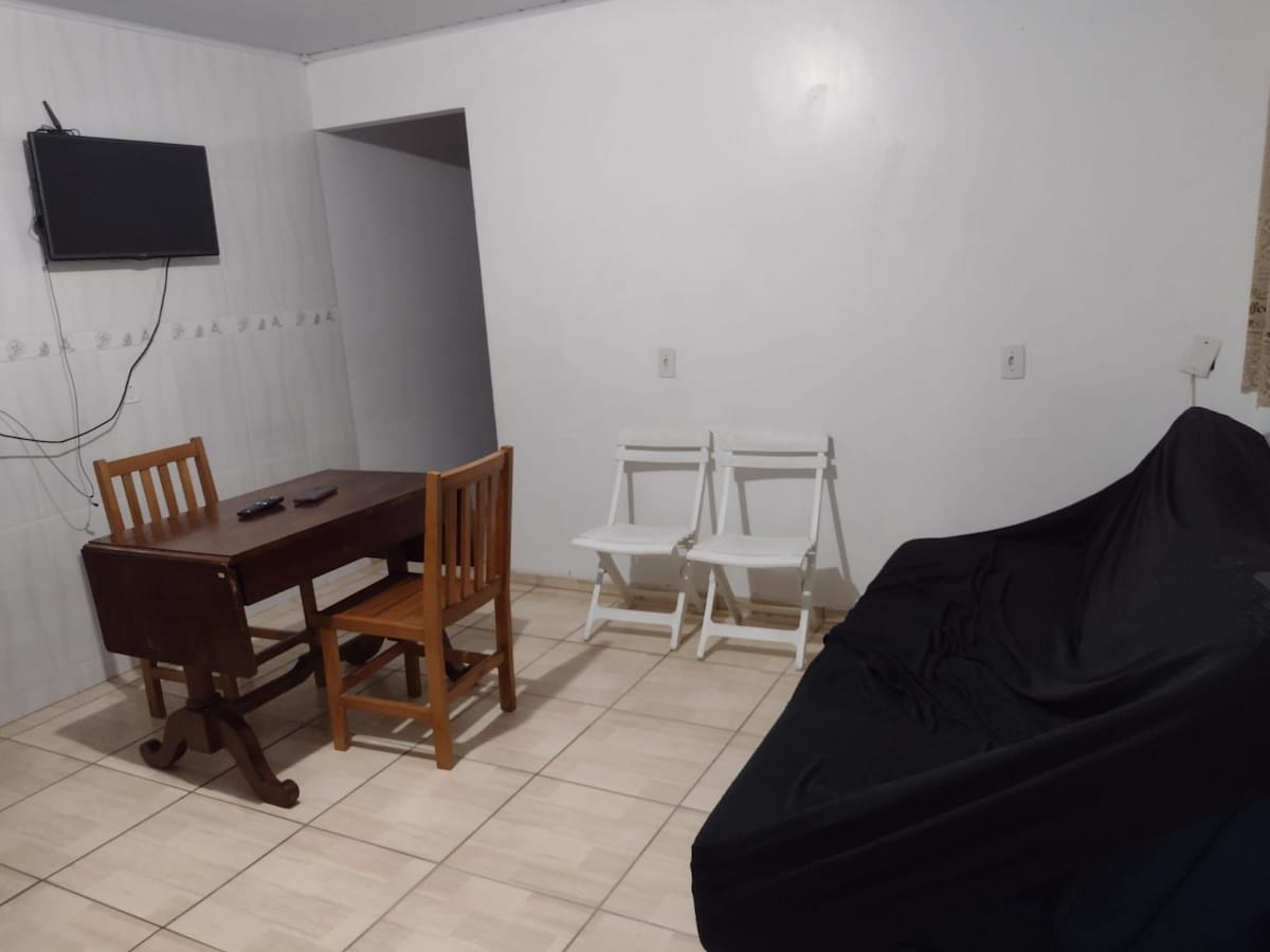 Casa térrea completa com entrada privativa de um dormitório, para casal e dois colchões de solteiro na sala, (será cobrado adicional na diária por pessoa). Cozinha completa com utensílios como: panelas, pratos, copos, talheres e eletrodomésticos. Churrasqueira a carvão. Área de serviço com tanque e maquina de lavar. Área externa com rede e mesa. Aceito pet. Sem garagem.