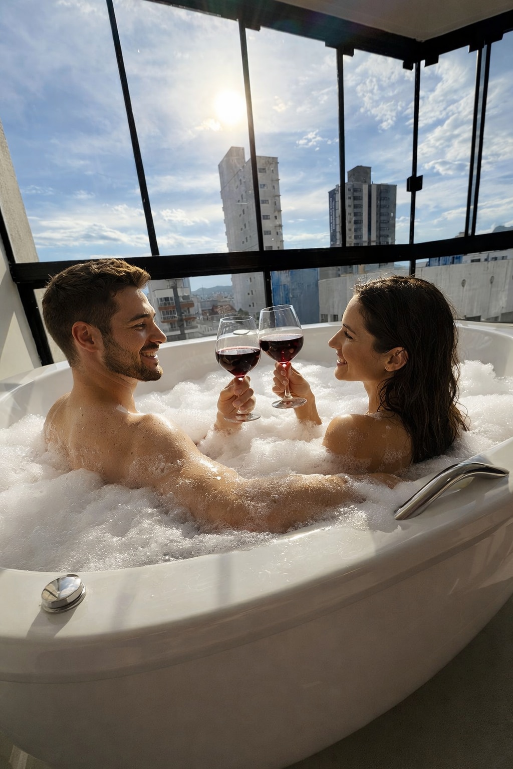 Esse apartamento além de encantador é super confortável, possui: - Porta com fechadura digital - ar condicionado em todos ambientes - Wi-Fi de 350 mega - Jacuzzi para 2 pessoas com hidro - Churrasqueira à carvão - Cozinha completa - TV smart na sala e quarto, 43'' - Camas Castor, com pillow e molas ensacadas - Roupas de cama e banho - Duchas à gás - Lavanderia com máquinas de lavar/secar - Secador de cabelos - Ferro e tábua de passar - Uma vaga de garagem gratuita