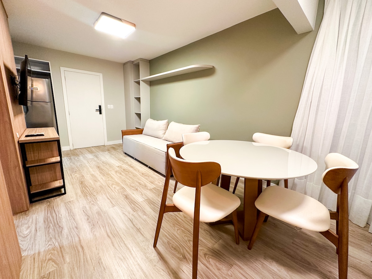Suíte, banheiro e sacada privativas! Esta acomodação elegante é perfeita para viagens, próximo de festas e praia para ter um ponto de partida localizado de fácil acesso e confortável! Possuímos espaço de café na suíte!