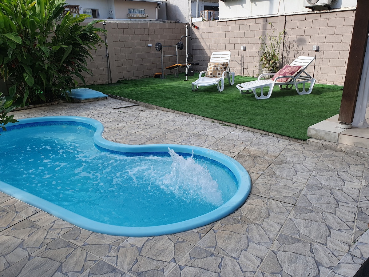 Casa de 2 andares com piscina, terraço com churrasqueira coberta, banheira de hidromassagem com água aquecida, 5 quartos, 4 ar condicionados, localizada no centro de Balneário Camboriú e perto da Praia Central. Ótima localização, Proximo a Mercado com padaria, açougue, restaurantes e farmácia. Garagem para 2 carros grandes.