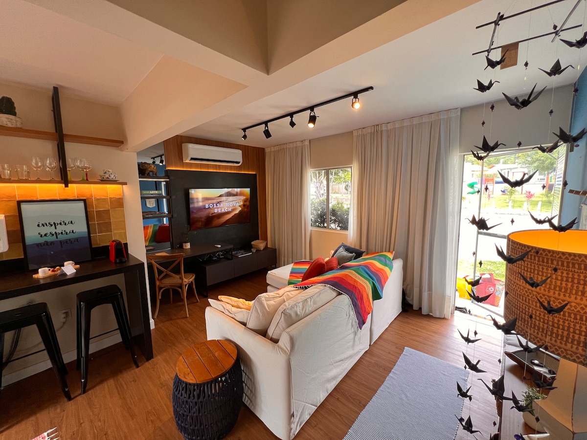 Triplex com suítes individuais de casal com cama box e colchão queen, armários planejados, ar condicionado split, tv, cozinha completa, sala de estar, terraço exclusivo com hidromassagem e churrasqueira, 150 metros da praia em Av. Atlântica, Balneário Camboriú.