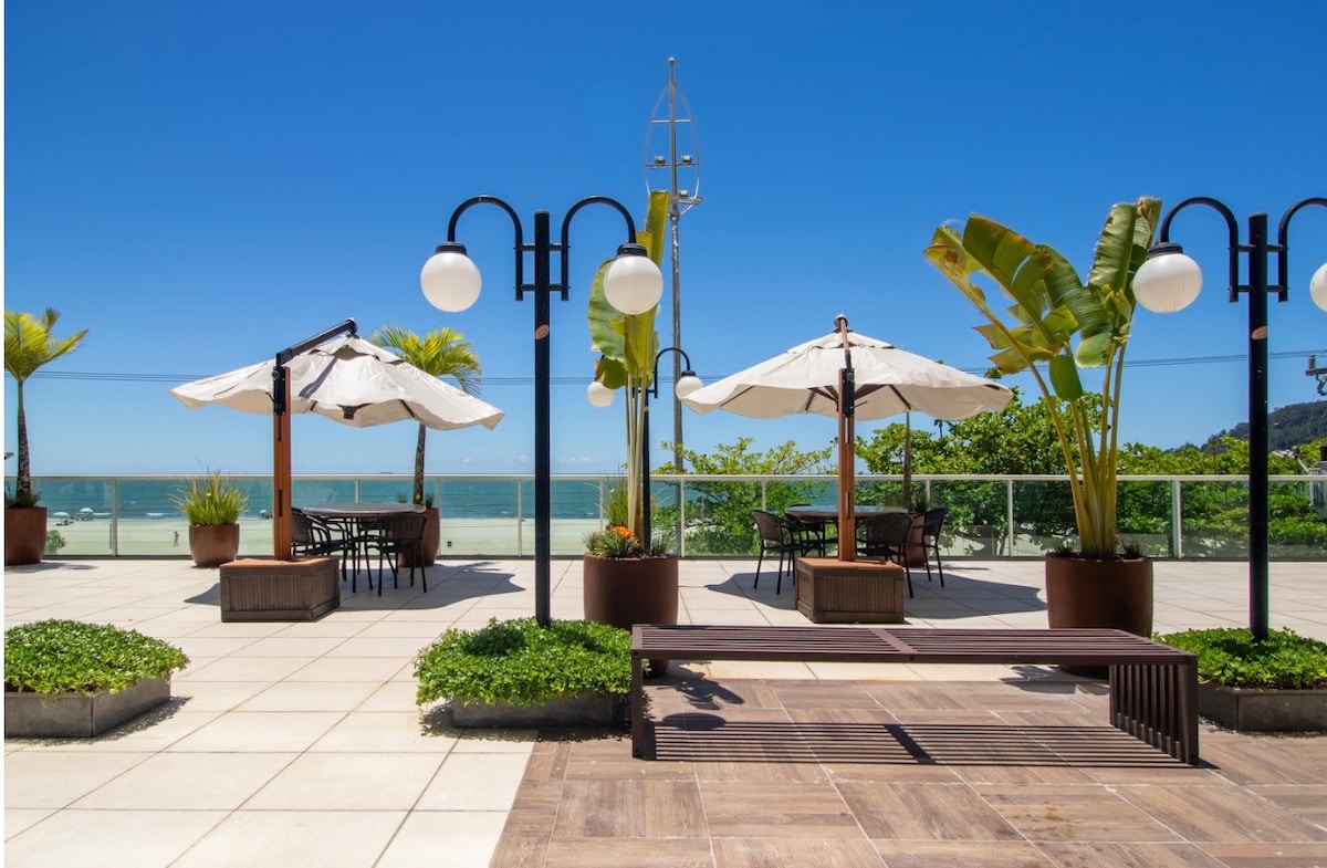 Vista mar 180 graus Experiência completa , piscina aquecida, academia, além de tudo o que você precisa para uma estadia confortável dentro e ao redor do prédio wifi, tv Smart, 2 ar condicionado Acesso rápido aos principais pontos turísticos Praia do outro lado da rua Garagem ampla fechada - Câmeras Lavanderia (R$ 34,00) Quiosque para churrasco (R$ 100,00) Exame online obrigatório para uso da piscina (R$ 40,00) PROIBIDO ANIMAIS 🚫 🚭 Proibido fumar no ap (espaço externo p/ fumantes) 📐 34m²