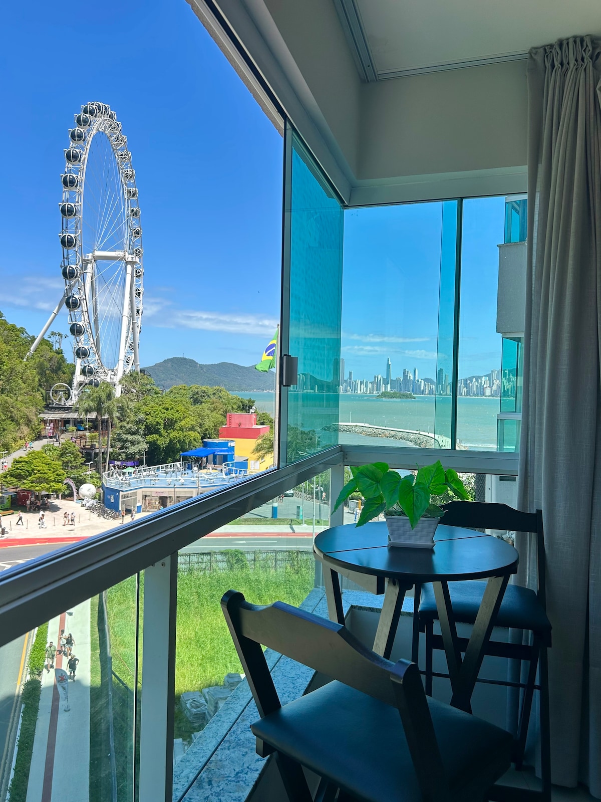 O local é maravilhoso e conta com uma vista de tirar o fôlego de toda a orla de Balneário Camboriú. Já da sala e do quarto do casal é possível ver com nitidez toda a orla do norte ao sul da praia. Ainda ficamos na frente de um dos pontos turísticos mais visitados e procurados de Balneário que é a Roda Gigante, que inclusive serve a noite como um abajur para o apartamento.
