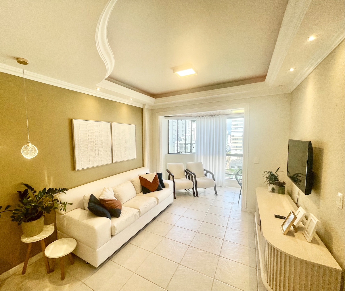 Apt with the best view of Balneário Camboriú, to the sea (front and total view of all the waterfront), to the forest next door (with trails), to the condominium pool (accessible to guests). You will be in a difficult choice to be dazzled and delighted! Oh, and still has the very well equipped apt, with everything new: 32 inch TV. Smart, Wi-fi, refrigerator two doors, air conditioning, stove, microwave, sofa bed, hair dryer, iron, etc. And with garage. I doubt the best value for money