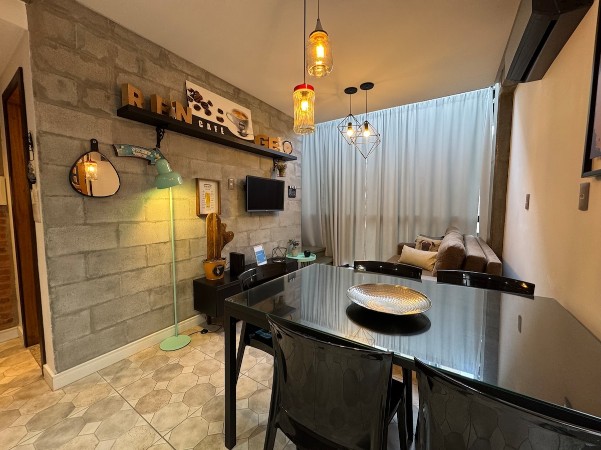 O Studio Basic é um ap completo de 25m2 localizado a 50m da praia. Possuí uma cama de casal, equipamentos de cozinha, televisão smart, wi-fi e ar-condicionado. É cercado por bares, restaurantes e supermercado. Está cercado por bares, restaurantes e supermercado. O edifício em si oferece uma série de comodidades adicionais como: estacionamento, piscina, jacuzzi, mercadinho 24h, academia e área gourmet com churrasqueira.