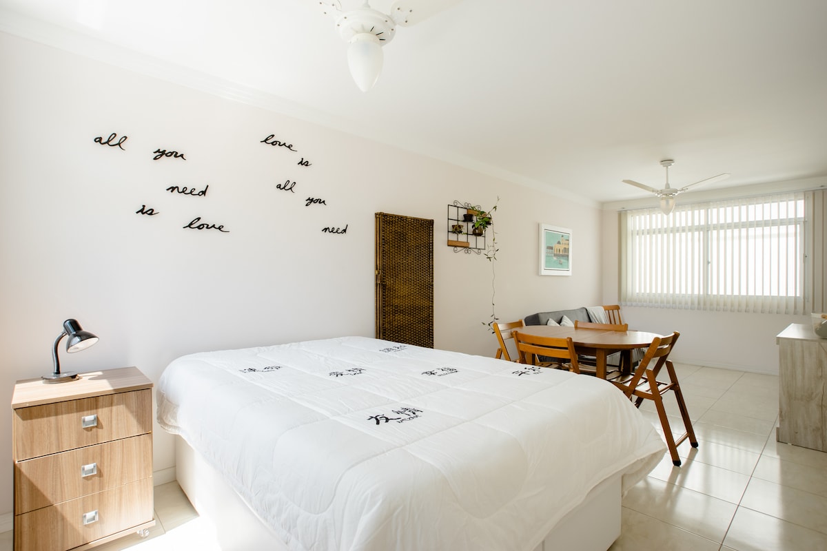 O Studio Terra é um ap completo com 22m2 exclusivo para os hóspedes, localizado a 50m da praia. Possuí uma cama de casal, equipamentos de cozinha, televisão smart, wi-fi e ar-condicionado. Sendo ideal para casais e para viajantes a trabalho. É cercado por bares, restaurantes e supermercado. O edifício em si oferece uma série de comodidades adicionais como: estacionamento, piscina, jacuzzi, mercadinho 24h, academia e área gourmet com churrasqueira.