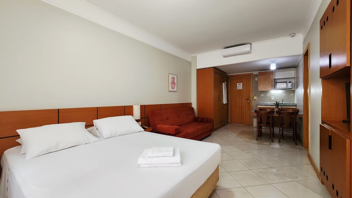 Este acolhedor Studio com vistas panorâmicas para o mar e roda gigante, localizado estrategicamente ao lado da praia, na barra norte da cidade, climatizado, é perfeito para uma estadia turística ou profissional. “O custo benefício é fantástico! Localização perfeita, ao lado da praia, sendo possível acessar a cidade sem tirar o carro da garagem e ainda poder usufruir da piscina, academia, parquinho infantil, quadra de esportes, sauna (seca), sala de jogos, e mirante!” Solange, sua anfitriã