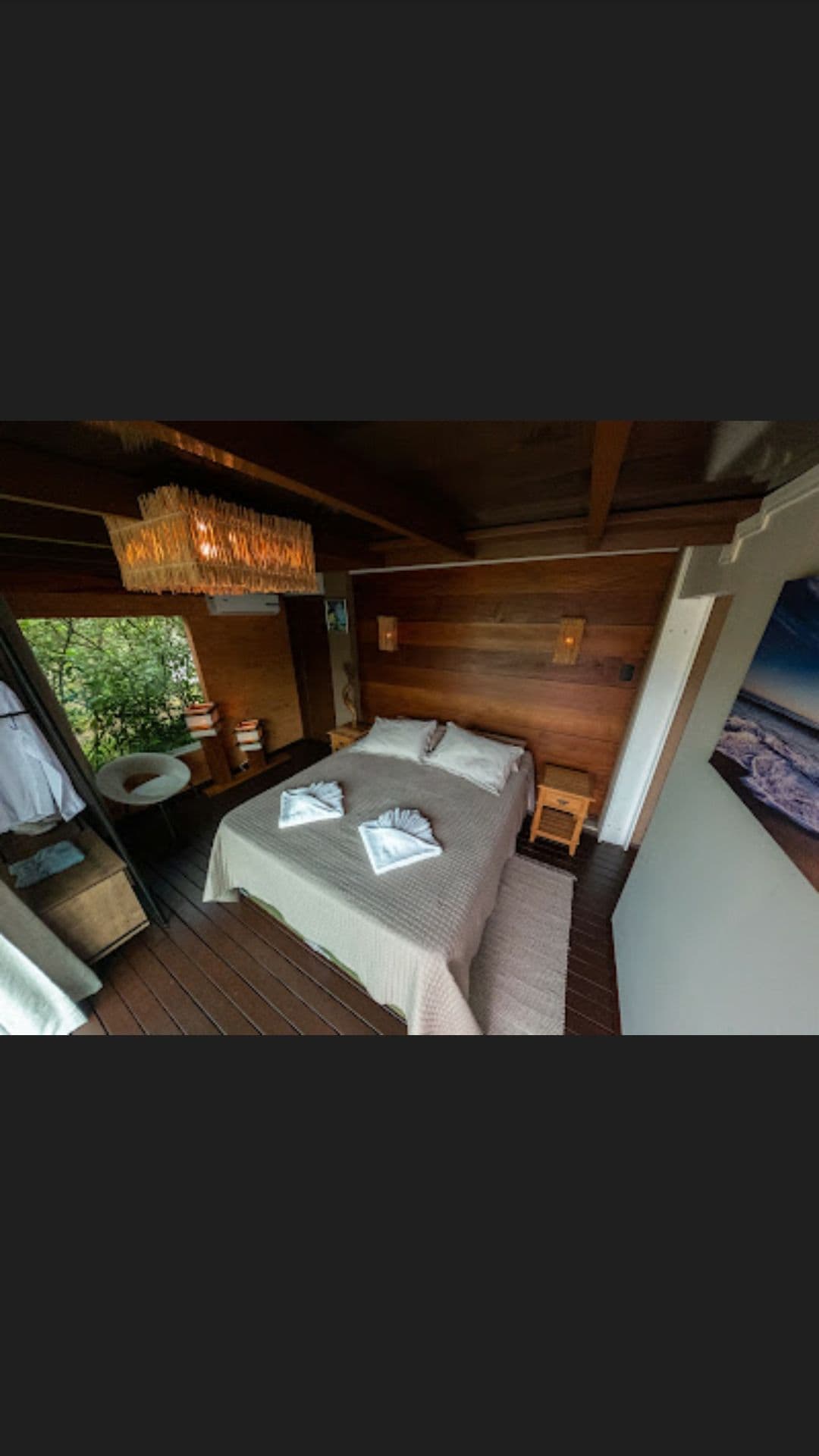 Exclusivo bangalô para casal dentro de uma villa particular com piscina, lago com ilha, horta orgânica e muito verde a apenas 150m do mar da Praia de Taquaras!