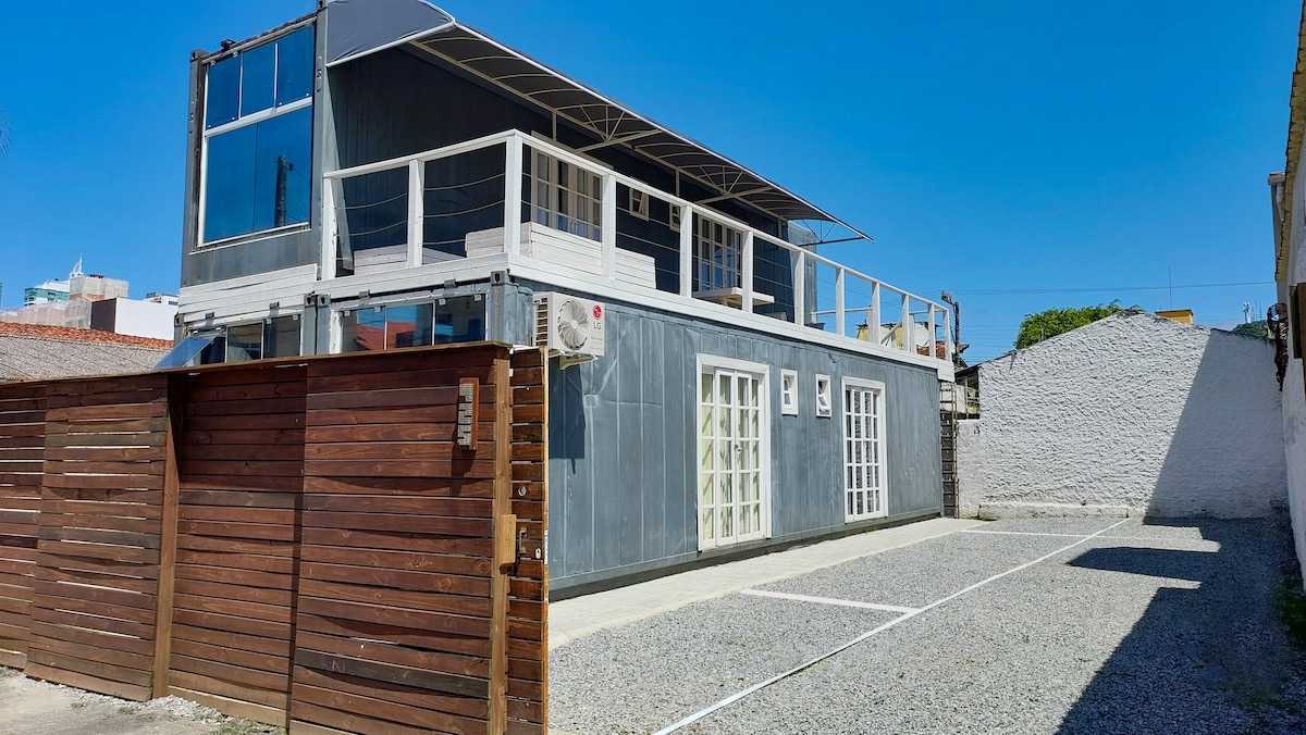 Kitnet for 2 people made in a refrigerated container (with THERMAL INSULATION like a common house) + air conditioning GROUND FLOOR in the BACK With parking space and 120mb Wi-Fi Internet Ideal for those who want to make the most of the city and save money on their stay There are 1000m from the central beach. Quiet street with nearby shops and easy access to the main avenues and Praia Brava. **each white door in the photos corresponds to a kitnet. There are 6 in total.