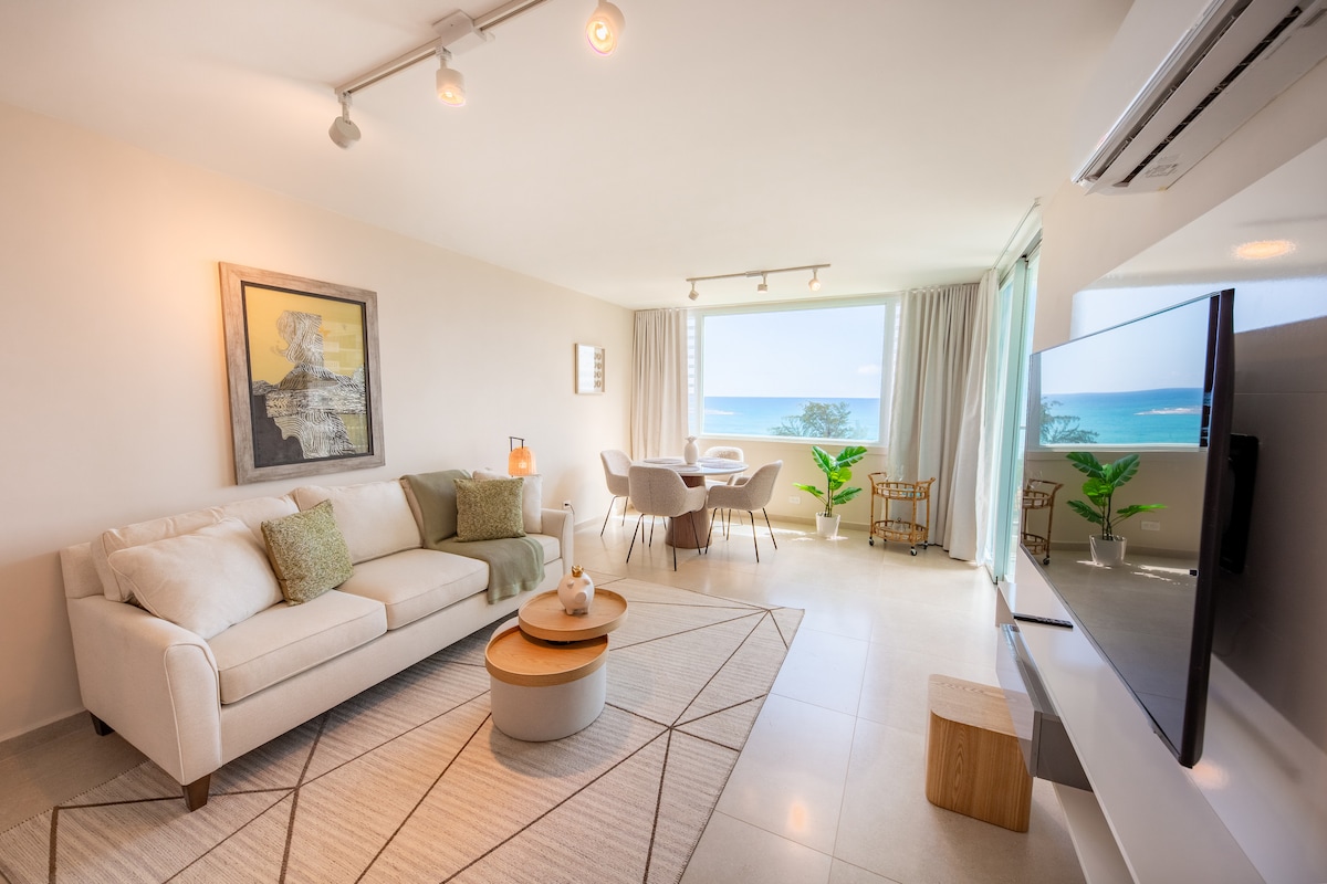 WE HAVE POWER AND WATER SERVICE EVEN AFTER HURRICANE FIONA. Beautiful Caribbean Ocean View Gem ! Newly remodeled apartment. Enjoy the gorgeous ocean view as the sound of the waves relax and renew you. The apartment is located about 35 to 45 minutes from the Luis Muñoz Marin International Airport (SJU), 15 minutes to El Yunque, 15 minutes to the ferry to Vieques and Culebra, 5 minutes to Los Kioskos de Luquillo (very popular local food places) and steps to several beaches.